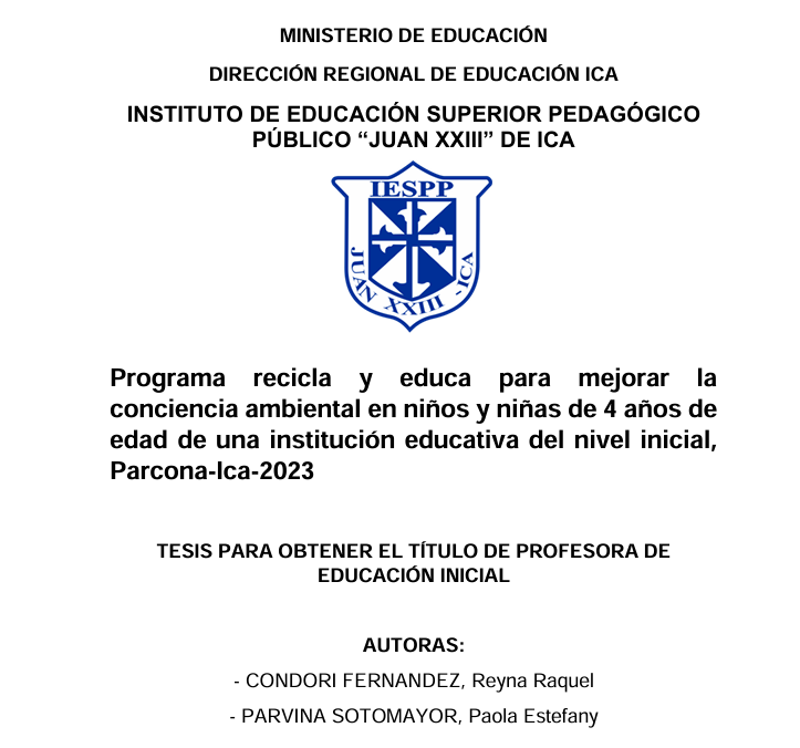 El Repositorio Institucional del I.E.S.P. Público JUAN XXIII de Ica se ha elaborado de la forma más apropiada para proporcionar información producida por la comunidad educativa del instituto